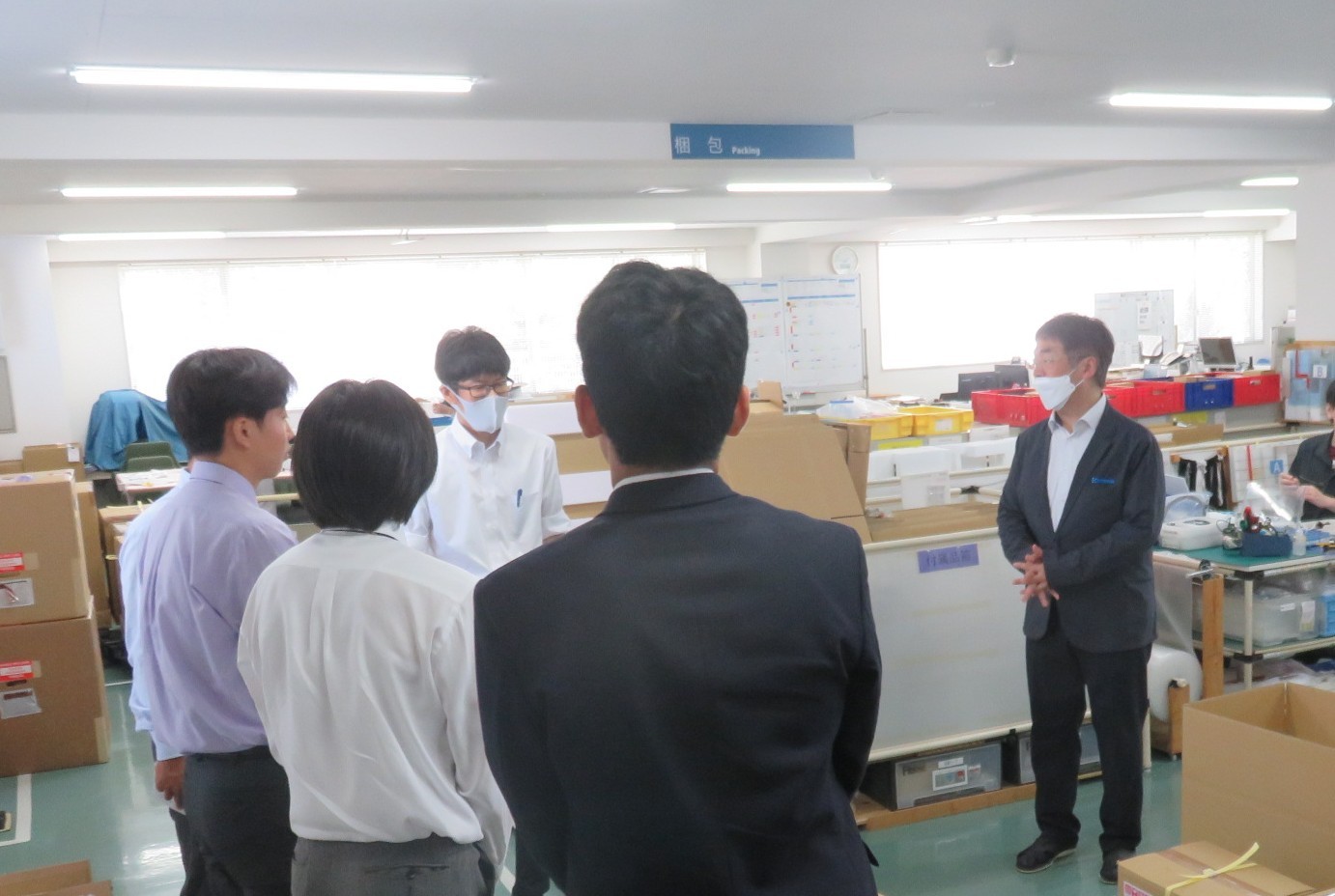 当社の製造フロアを見学していただき、どのようにして商品が出荷されていくのかを見学していただきました。