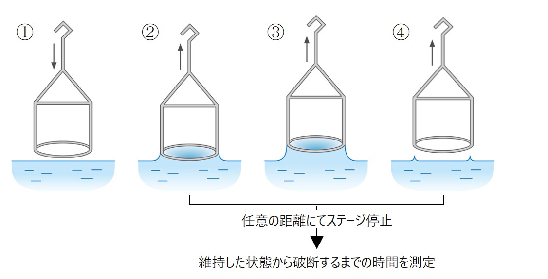 - 測定項目: 膜が破断するまでの「長さ」