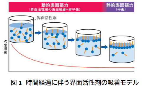 < 関連ワード:動的表面張力、界面活性剤、洗剤、吸着 >