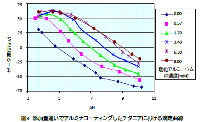 ZetaProbeやAcoustoSizer IIxを用いたpH滴定により、チタニア粒子表面のコーティング状態を簡単に把握すること